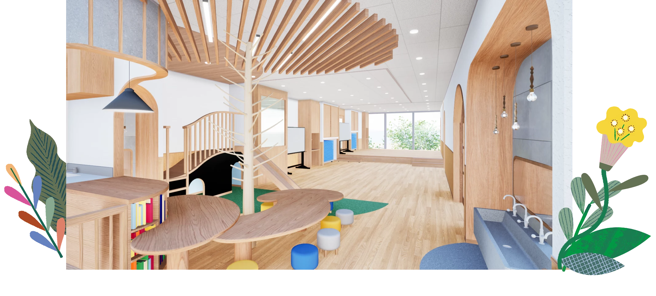 大人が決めた枠にはめるのではなく、子どもたちの関心や想像力を尊重します。日々の温かな関わりの中で提供される多角的なアプローチが豊かな土壌となり、未来に向かって力強く伸びていくための「しなやかな根」を育てます。